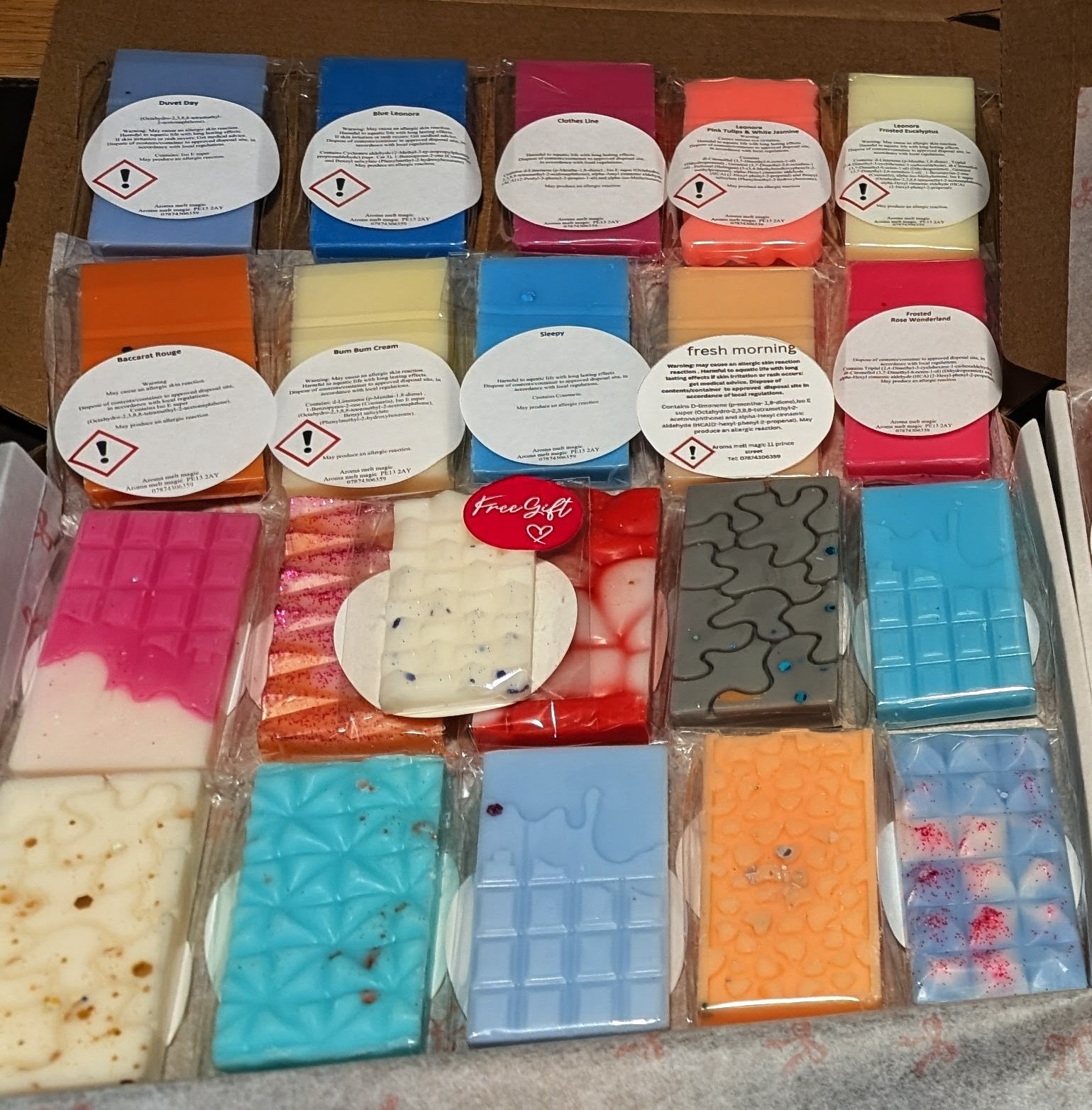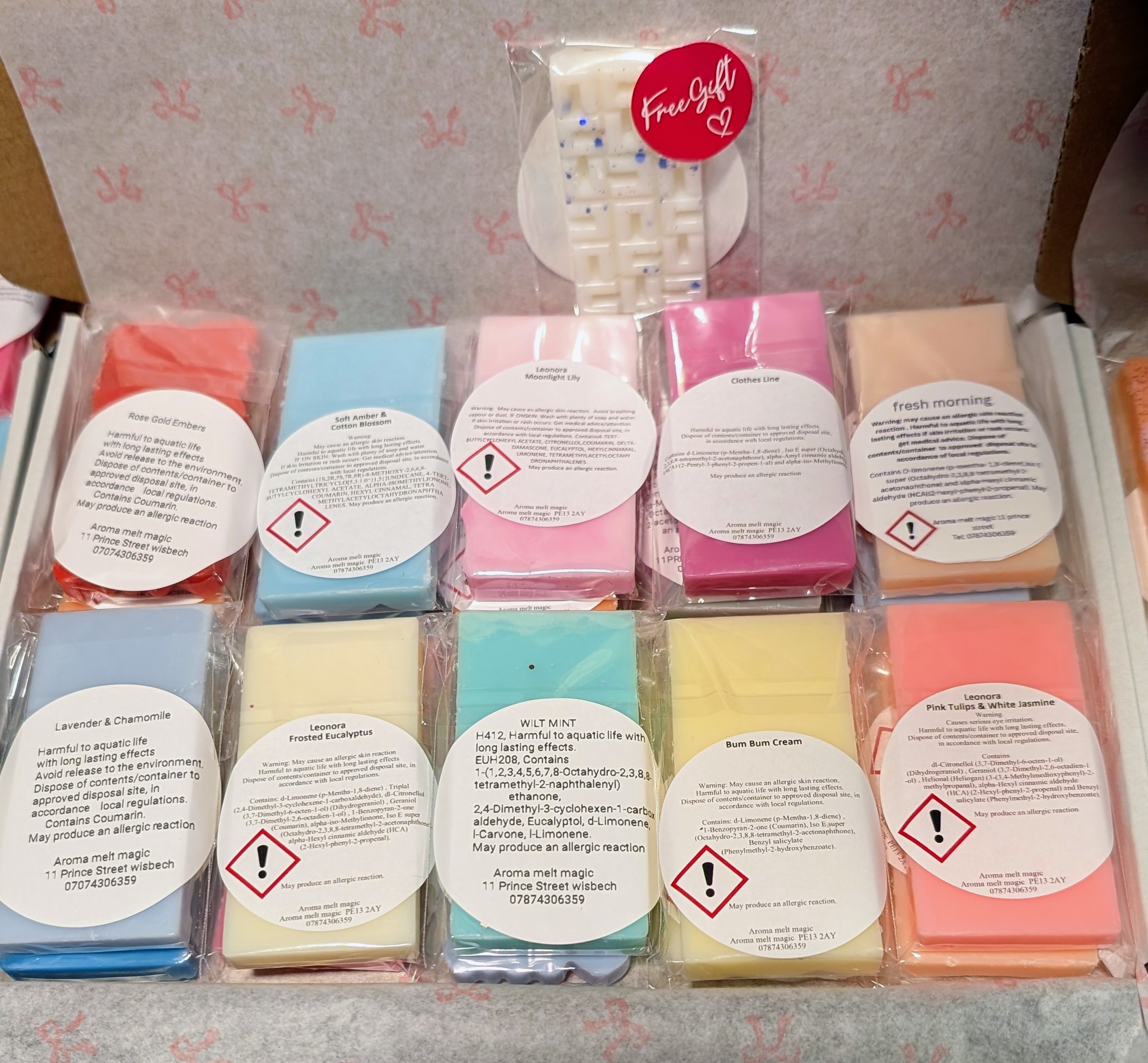 EACH BAR IS INDIVIDUALLY WRAPPED AND CONTAINS THE NAME OF THE FRAGRANCE AND CLP LABEL